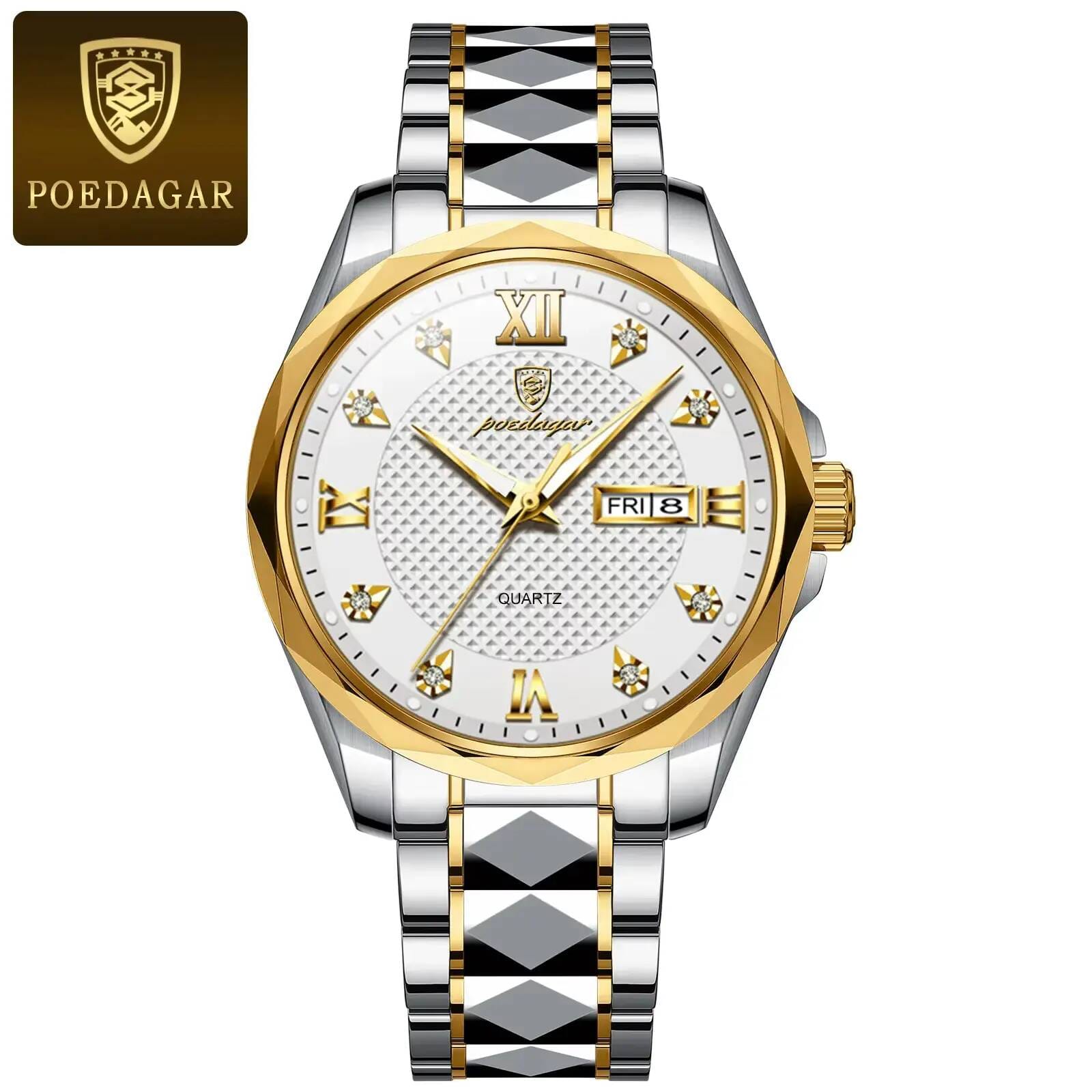 Product details of POEDAGAR 998 Luxury Luminous Date Week Men’s Stainless Steel Quartz Watch