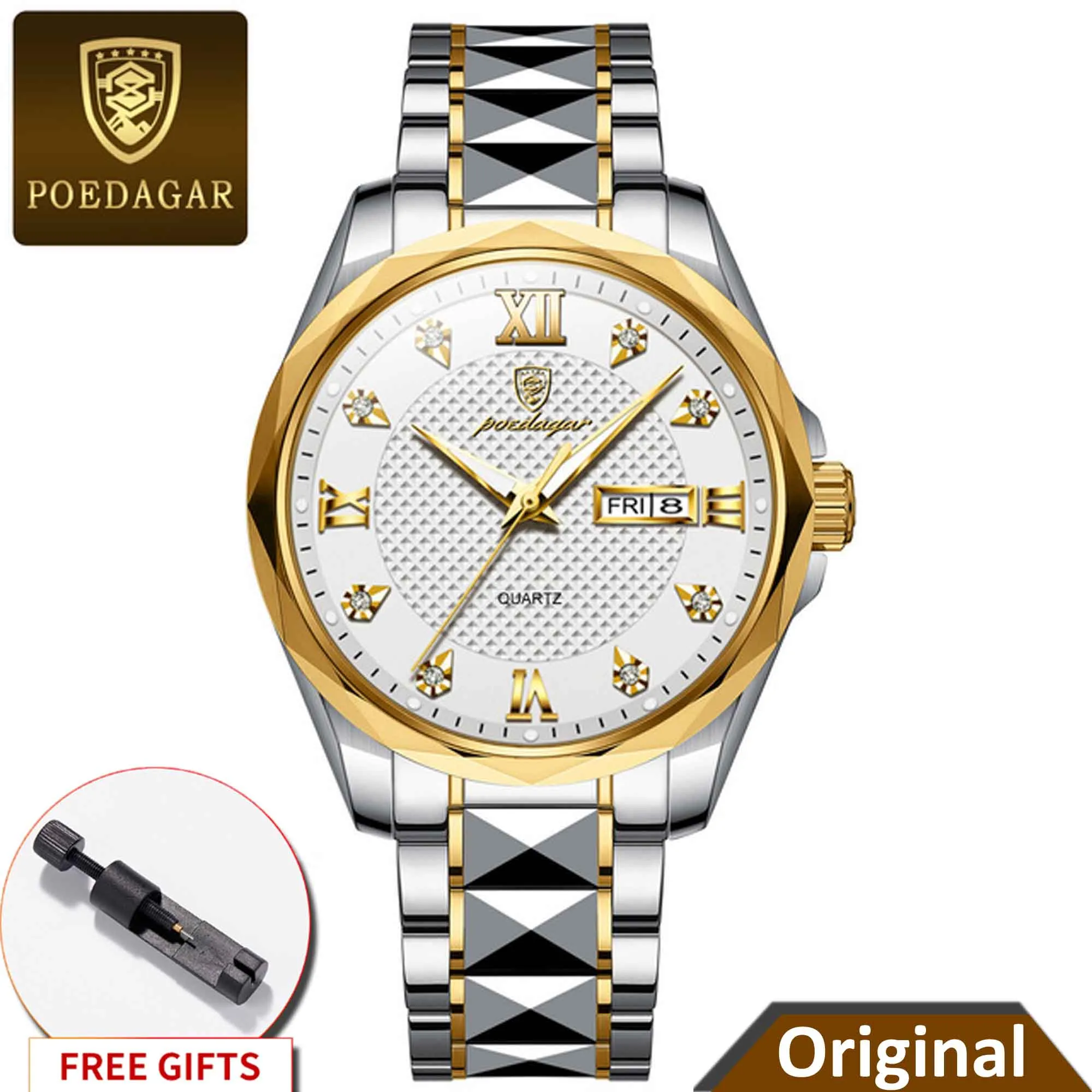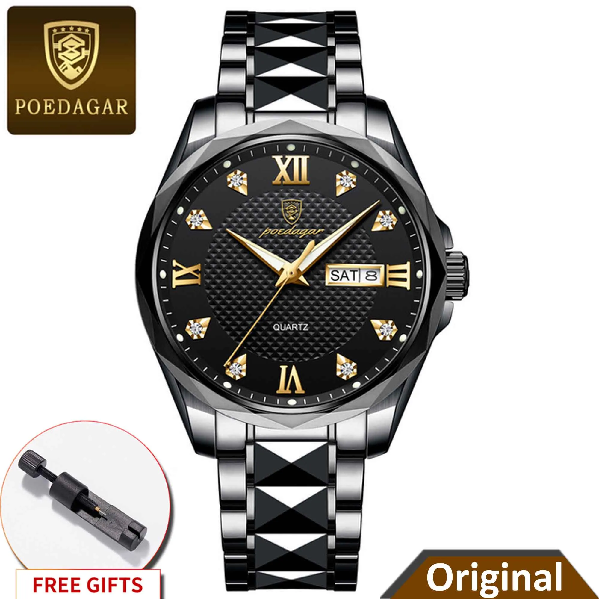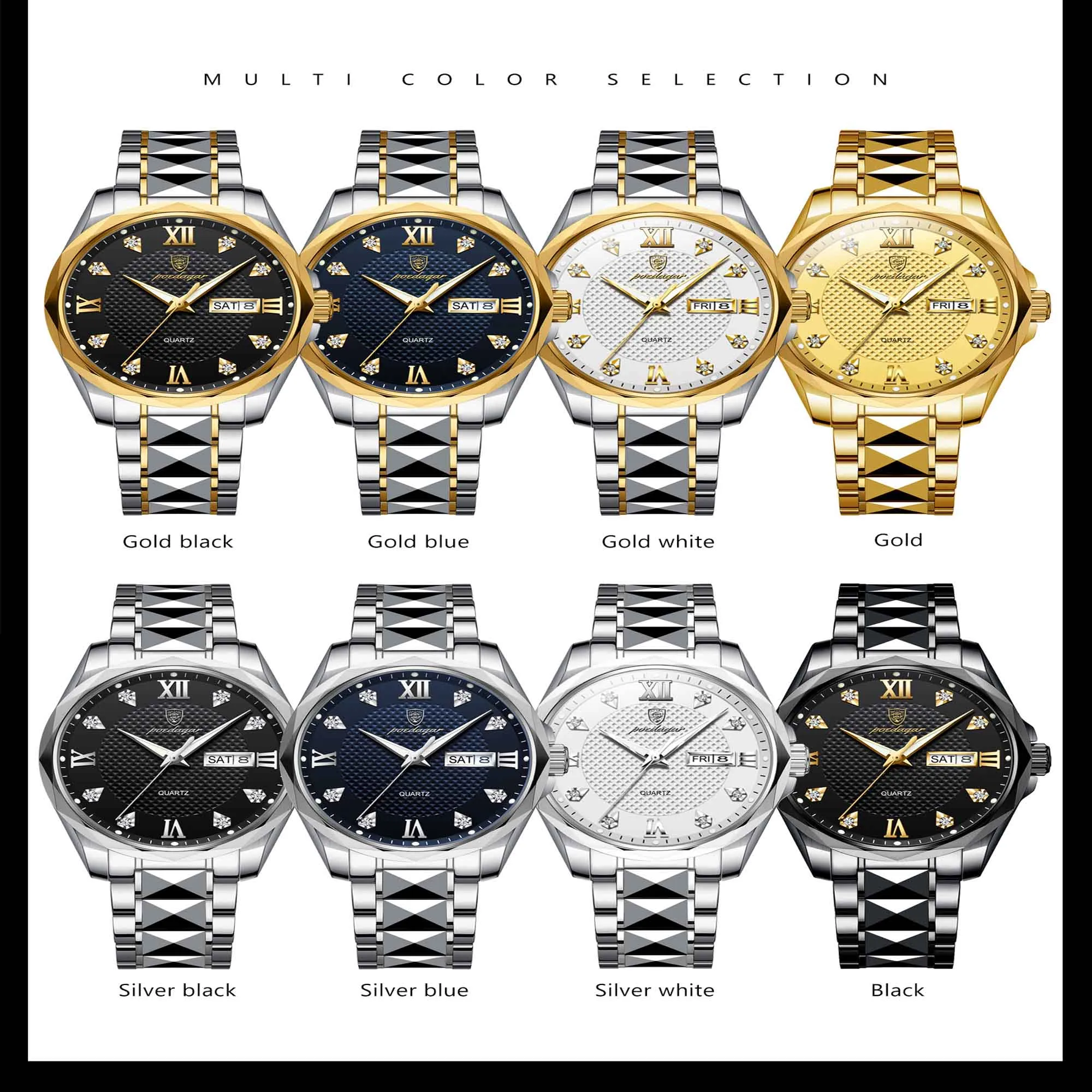 Specifications of POEDAGAR 998 Luxury Luminous Date Week Men’s Stainless Steel Quartz Watch