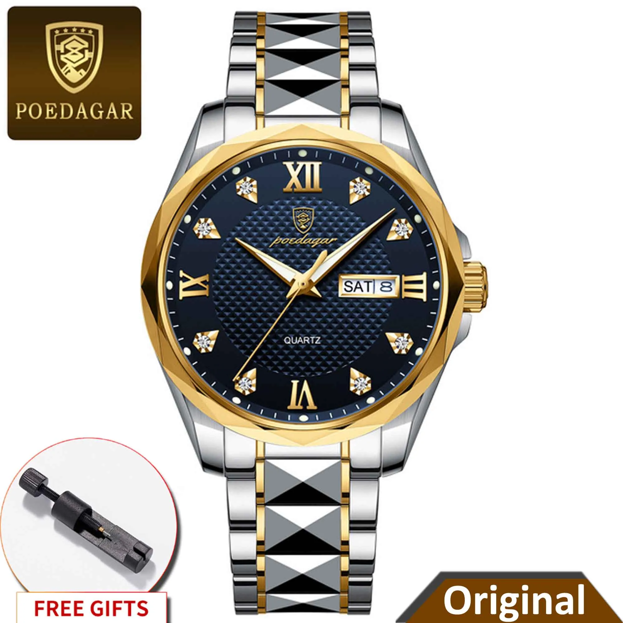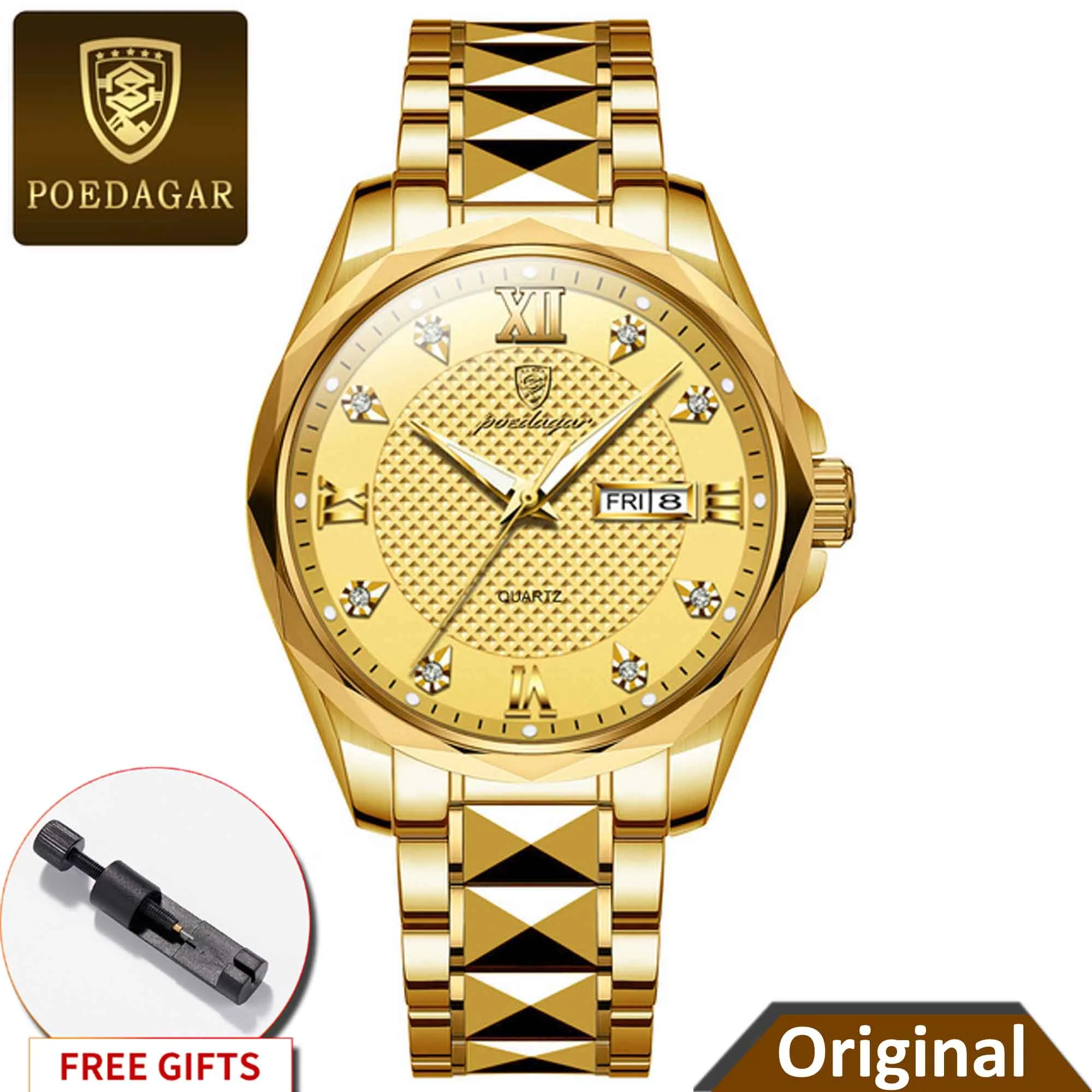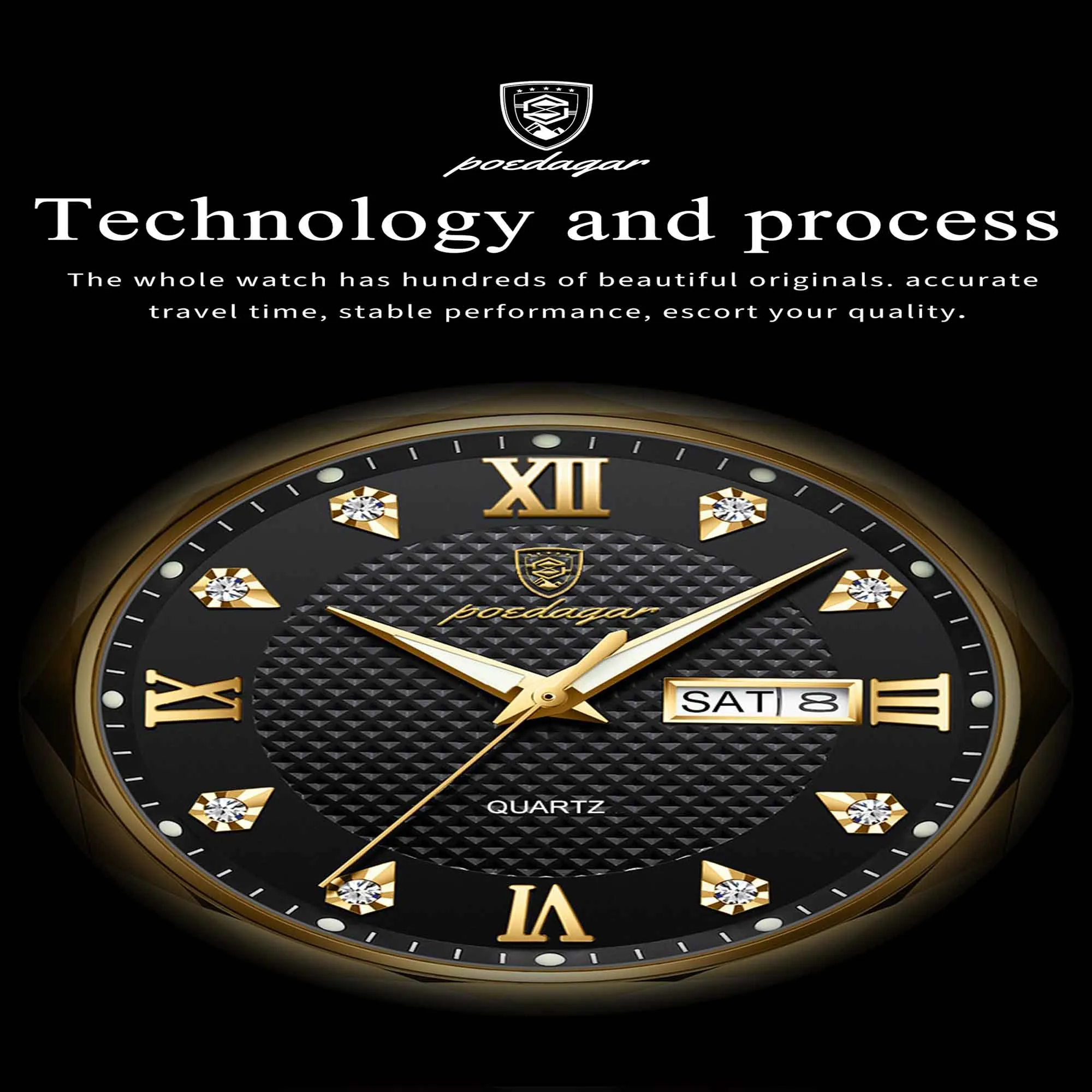 Specifications of POEDAGAR 998 Luxury Luminous Date Week Men’s Stainless Steel Quartz Watch
