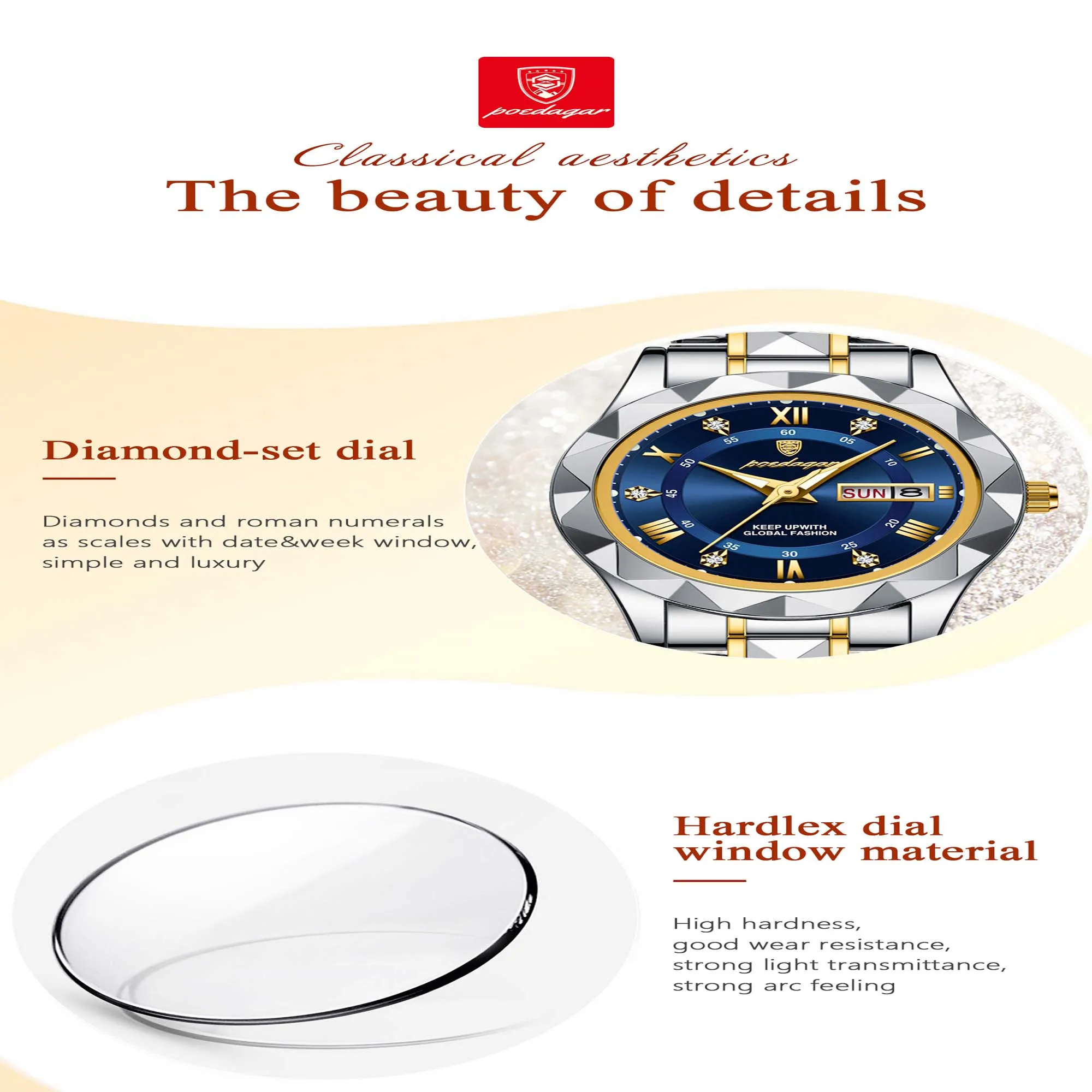 ✔ঘড়িটিতে রয়েছে ডায়মন্ড কার্ট সেফ বডি এবং স্টেনলেস স্টিল (মরিচা প্রতিরোধক)